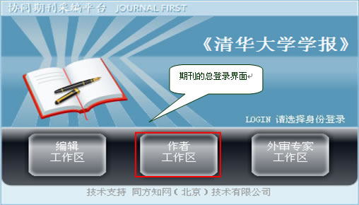 输入期刊的http://****.cbpt.cnki.net网址(****为系统分配给期刊的拼音刊名),从“作者工作区”进入,输入作者注册的用户名和密码,点登录即可。